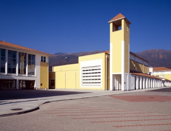The schools were subdivided into several structures to accommodate efficient structural framing and seismic design requirements. The primary school consists of a three-story rectilinear building and two two-story buildings. The secondary school has a three-story rectilinear wing, a two-story library and locker room building and a large gymnasium.