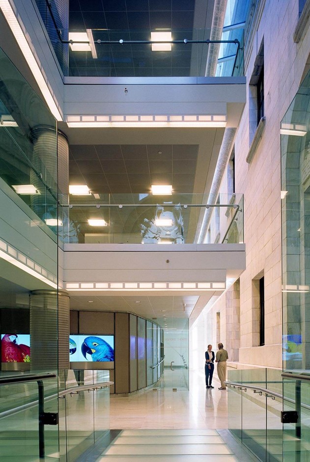 As an addition to a landmark building, the project demanded a structure that was not visible from the exterior of the original Carrère and Hastings building. In order to provide the desired space and program elements, the architect created levels below grade, thereby maintaining the existing building’s height. The below grade levels required underpinning the massive foundations of the existing Library all around the court. South Court is detached from the original structure, touching the existing façades lightly, making only minimal connections necessary for travel between the two buildings.